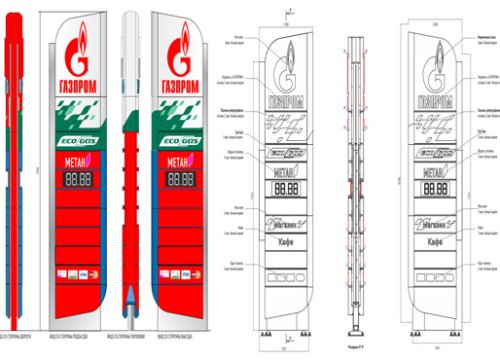 Под проектированием стел для АЗС принято понимать процесс определения архитектуры, компонентов, интерфейсов и других характеристик рекламно-информационной конструкции. Результатом проектирования стелы является технический проект – целостная совокупность моделей, свойств или характеристик, описанных в форме, пригодной для реализации указанной конструкции.