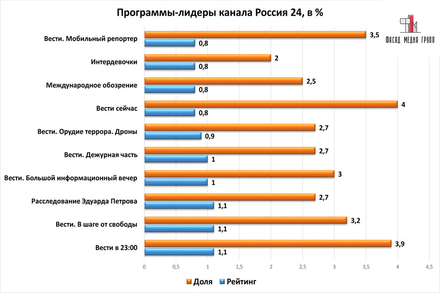 Популярность телеэфира на «России 24» приводит к ежегодному увеличению спроса на рекламное время. Для привлечения клиентов из разных регионов России, увеличения процента продаж, повышения имиджа компании и узнаваемости бренда – размещайте рекламу на «России 24». «Россия 24» – это проверенный и востребованный канал для размещения рекламы на севастопольском ТВ. Для размещения рекламы на телевидении обращайтесь в рекламное агентство «Фасад Медиа Групп». Будем рады сотрудничеству.