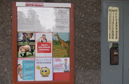 Реклама в подъездах отличается тем, что рекламные материалы располагаются на уровне глаз потенциального клиента или покупателя. Удачное расположение рекламы приводит к тому, что листовки, буклеты и другие форматы рекламы в подъездах хорошо видны и обеспечивают 100% читаемость со стороны жильцов дома.